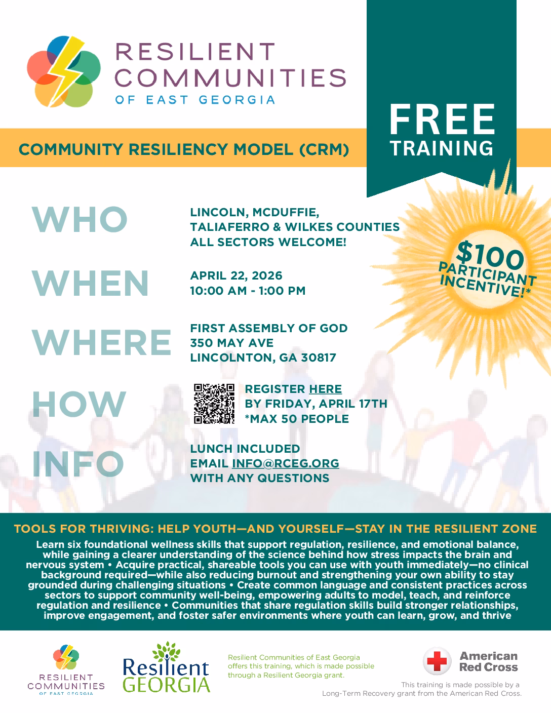 Join us for a free Community Resiliency Model (CRM) training designed to help build resilience, emotional balance, and practical wellness skills for both youth and adults.